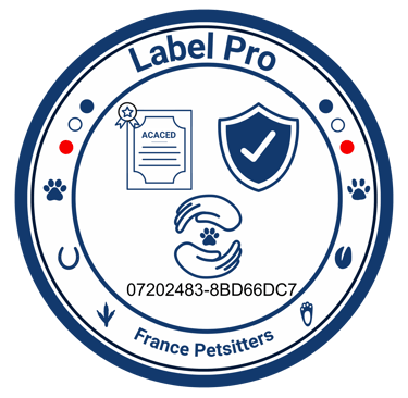 Titulaire de l’ACACED chiens et chats (Attestation de Connaissances pour les Animaux de Compagnie d’Espèces Domestiques), obtenue chez l’organisme de formation Vox Animae.